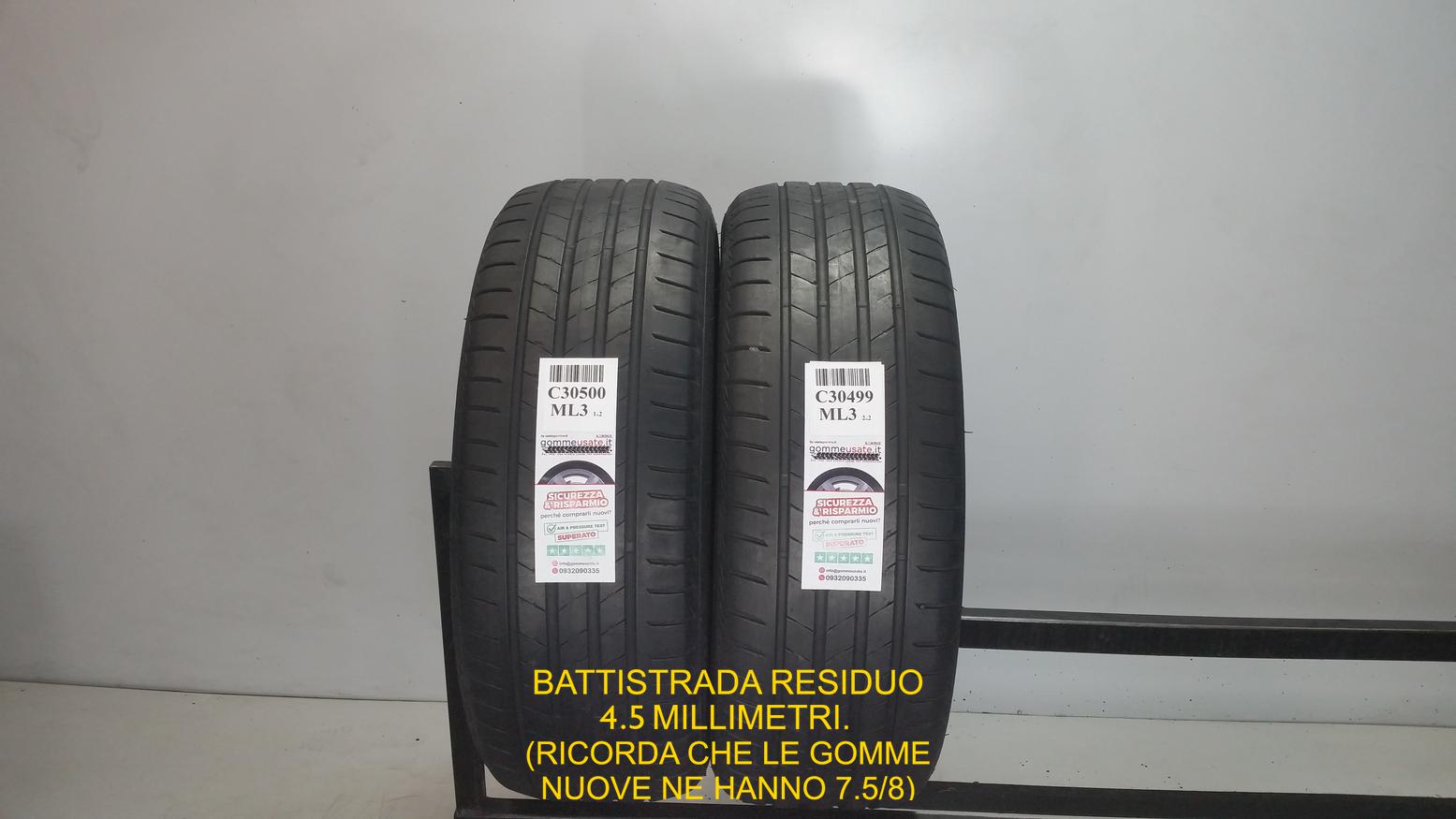 * il pneumatico ha 4.5mm di battistrada residuo, un pneumatico nuovo delle stesse dimensioni ne possiede 7,5/8mm.