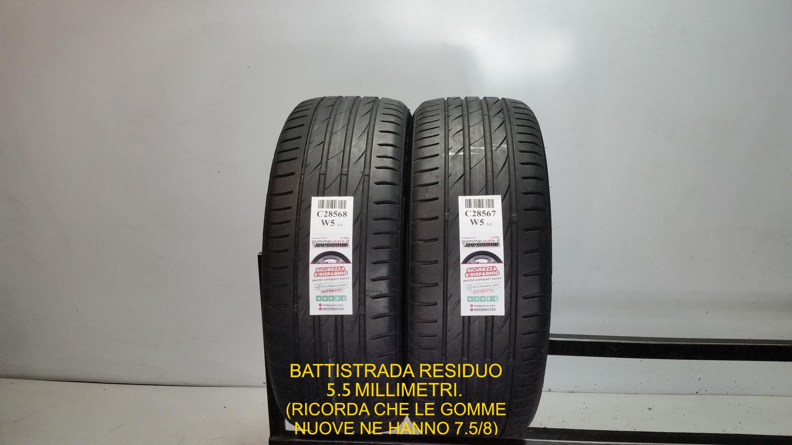 * il pneumatico ha 5.5mm di battistrada residuo, un pneumatico nuovo delle stesse dimensioni ne possiede 7,5/8mm.
